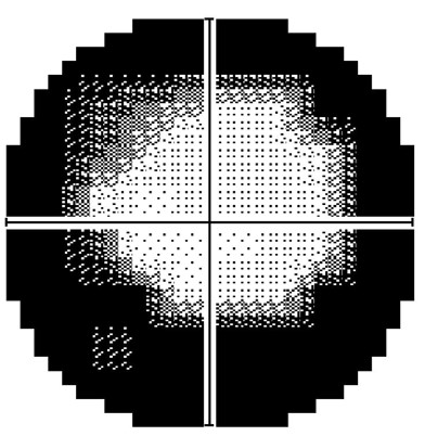 A 67 year old Caucasian male, diagnosed with retinitis pigmentosa more than 30 years ago. His best corrected (central) visual acuity is 6/7.5 (20/25) in the right eye and 6/6- (20/20-) in the left.