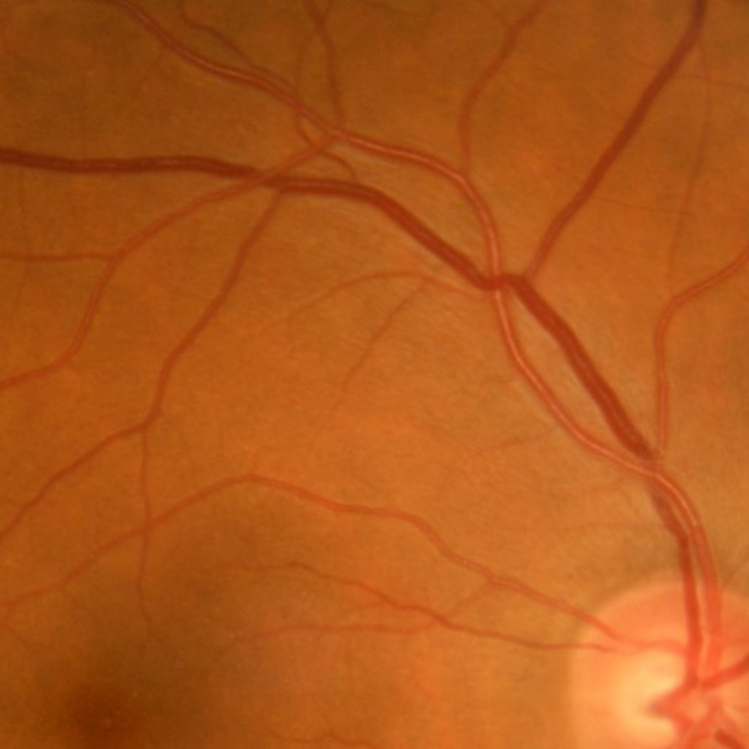 A 70-year-old Caucasian female with systemic hypertension, treated with medication. Her in-office blood pressure measurement was 139/90 mmHg. Her best corrected visual acuity was 6/6 (20/20) in each eye.