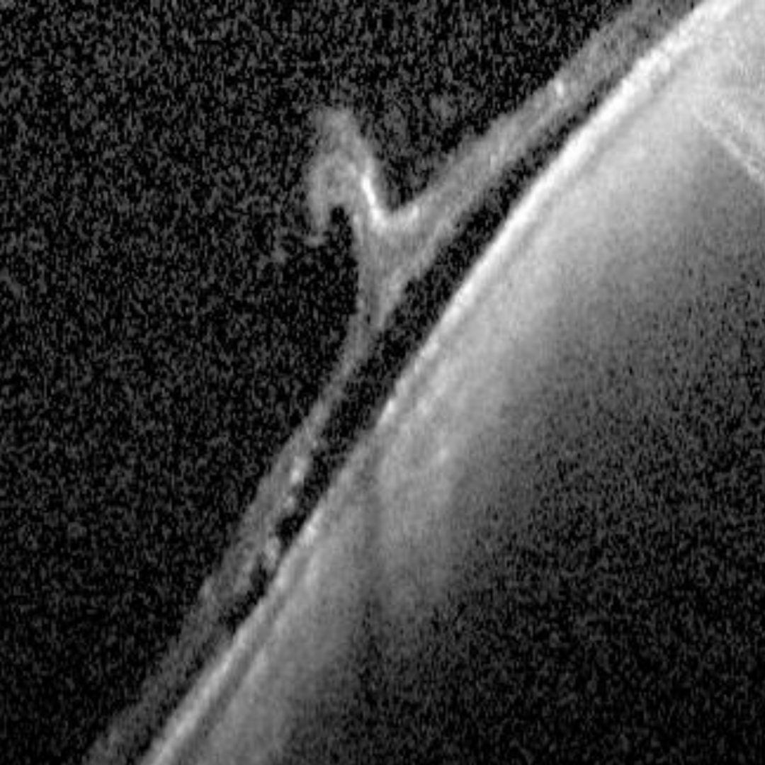 OCT imaging of cystic vitreoretinal tufts reveals the presence of internal microcysts. A posterior vitreous detachment (PVD) can cause increased traction at the location of the tuft, potentially resulting in a retinal tear, operculated hole or retinal detachment.