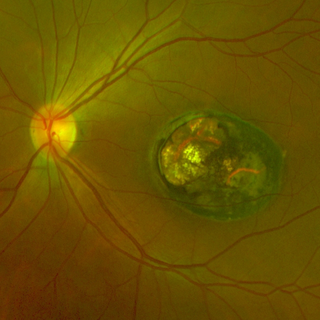 Case 1: Inactive toxoplasmosis scar at the macula