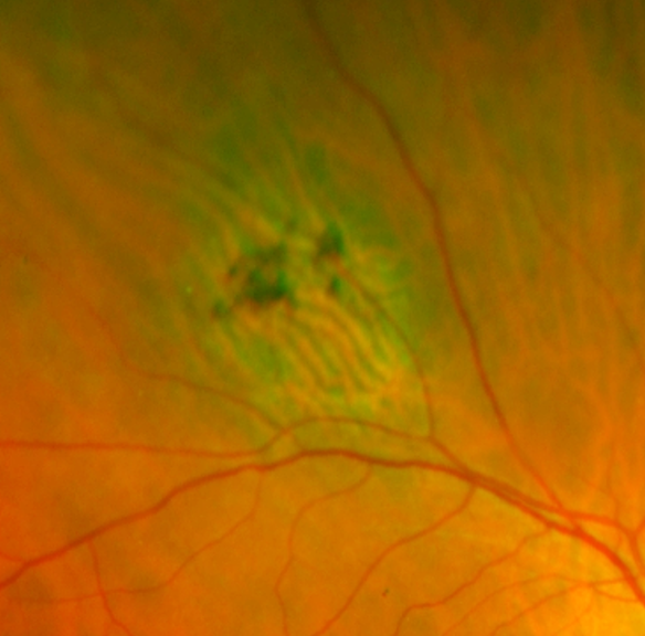An asymptomatic 49 year old female with no signficant ocular or medical history. Visual acuity is 6/6 in this eye.
