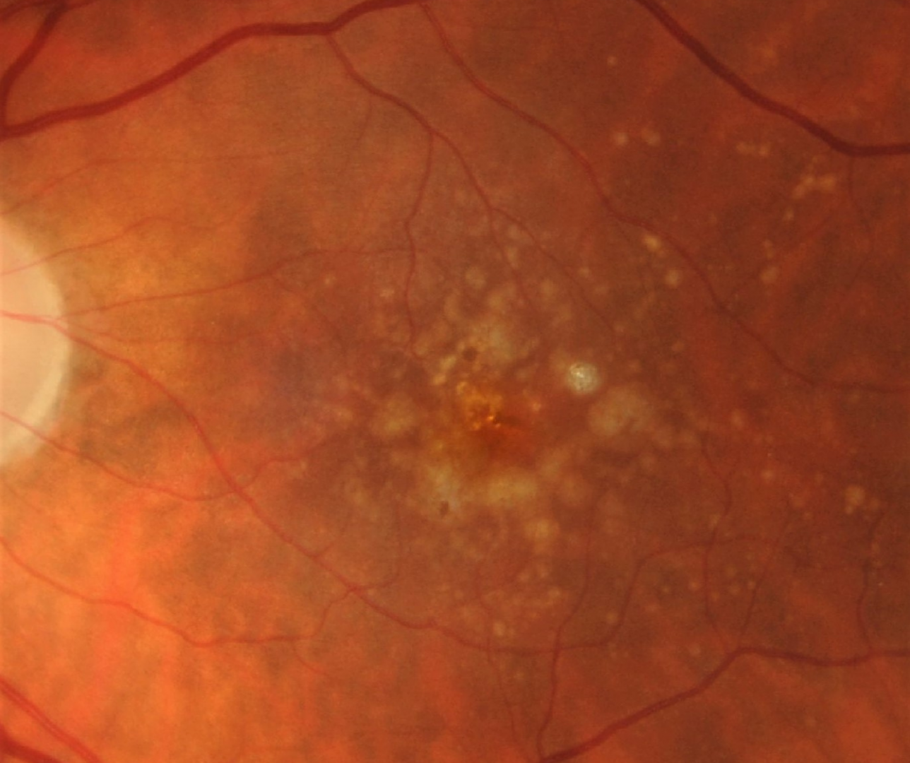 In AMD, pigmentary abnormalities refer to the presence of hyper-pigmentation or hypo-pigmentation within two disc diameters of the fovea with drusen 63μm or more in diameter. It is a feature of at least intermediate AMD and is associated with a higher risk of progression to late AMD.
