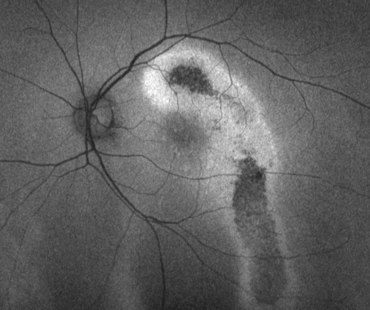 RPE disturbances are characteristic of the pachychoroid disease. These disturbances typically overlie an attenuated choriocapillaris and vary in size and appearance with the stage of disease present.