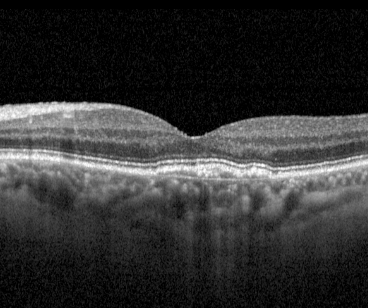 A 58-year-old Middle Eastern male with best-corrected visual acuity in the left eye of 6/9.5 (20/32). He reported waviness both superior and inferior to the fixation on Amsler grid testing when viewed with the left eye.