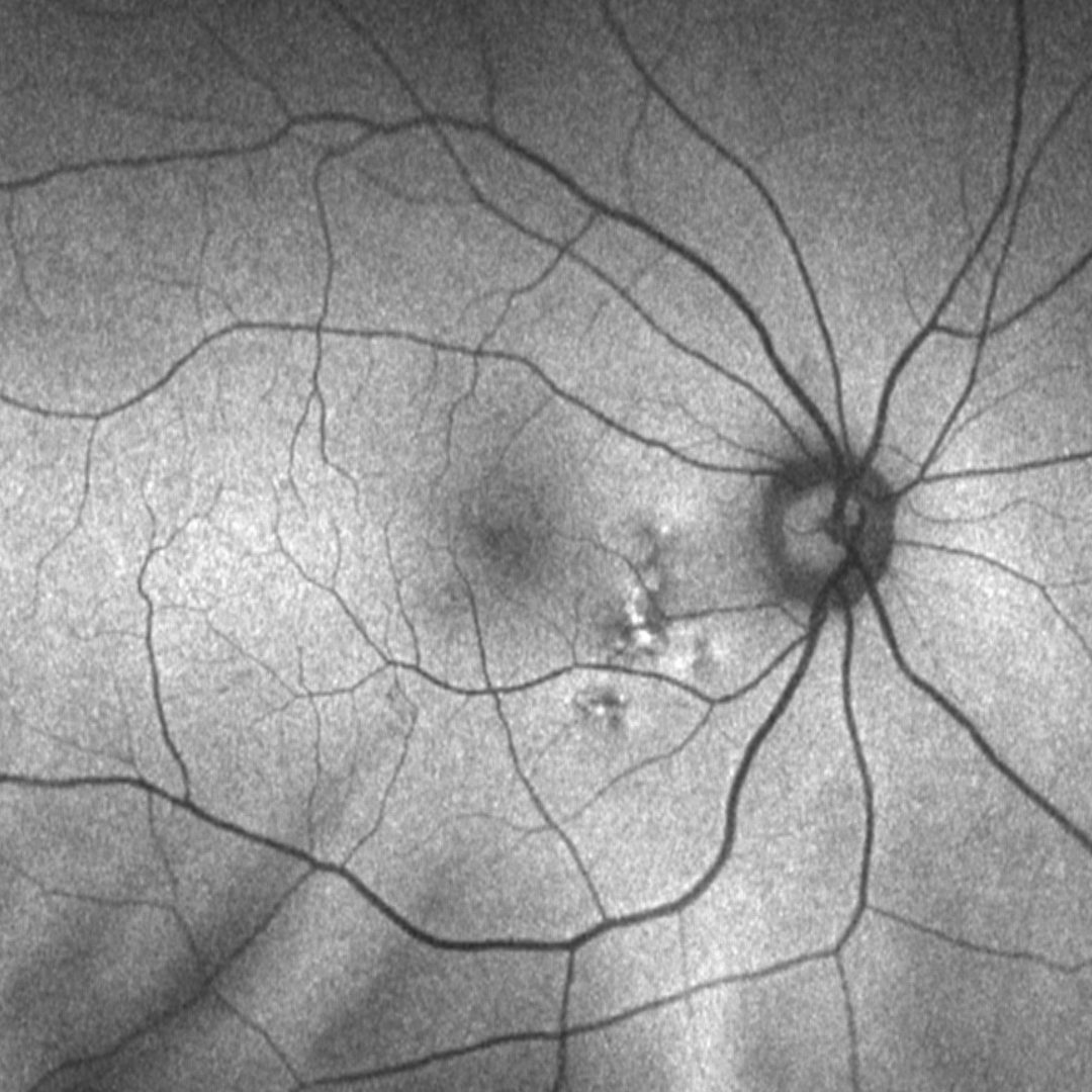 Fundus autofluorescence imaging can show a granular hypo-autoflurorescence or a mixed stippled hypo and/or hyper autofluorescence.