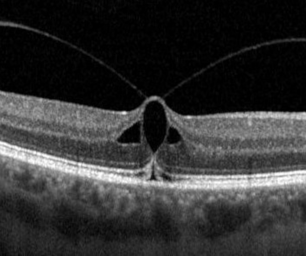 Vitreomacular traction (VMT) is defined as vitreomacular adhesion and traction within a 3mm radius of the fovea with perifoveal vitreous cortex detachment. It causes distortion of the foveal surface and may be associated with intra retinal abnormalities.